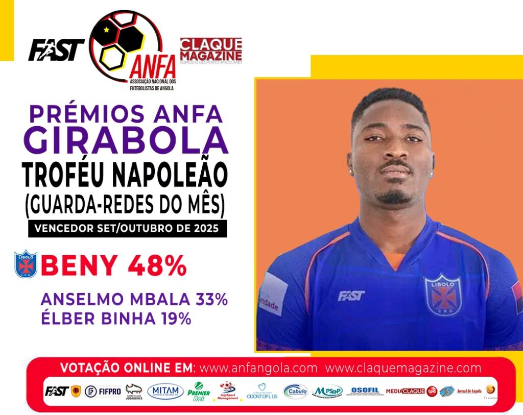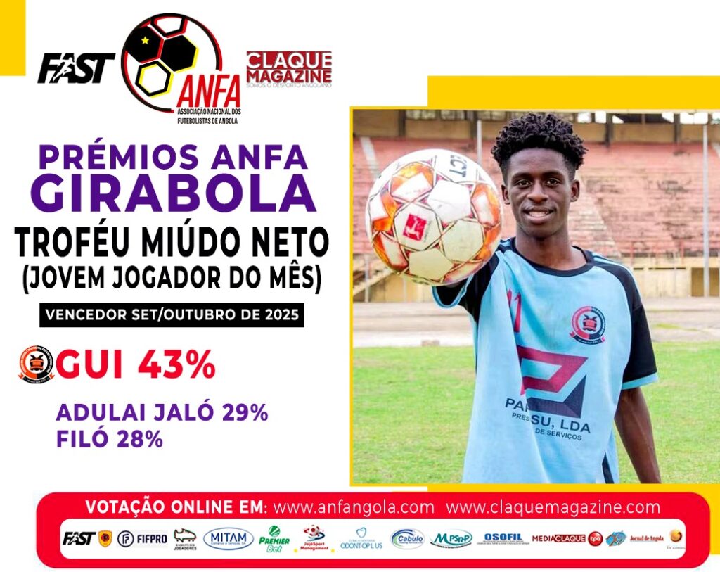 Encerrado que está o escrutínio da votação para os Troféus ANFA, a Associação Nacional dos Futebolistas de Angola (ANFA), anuncia os vencedores dos Prêmios ANFA, referentes, simultaneamente, aos meses de Setembro e Outubro de 2025, destacando os atletas que mais se evidenciaram nas principais categorias do Girabola.